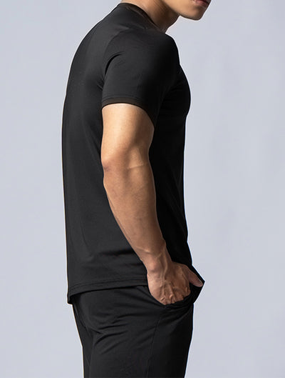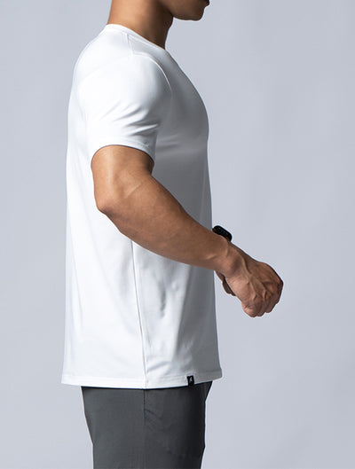 手触りが柔らかく耐久性が高いファンクショナルTシャツ。ウエストラインは両サイドを絞りすっきりとしたスリムフィット感です。