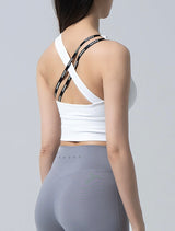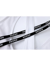 背面のショルダーストラップには、プリントされたロゴのクロスデザインを採用し、シンプルさの中に変化を加え、質感のある生地と組み合わせることで、衣服の視覚的な洗練性を高めています。