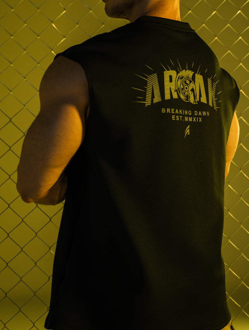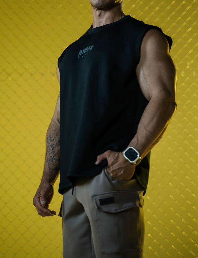 縦長でゆったりとしたシルエットは動きやすさを確保し、ワイドショルダーカットにより胸元と肩周りの視覚効果を強調。上半身をより力強く、筋肉質に見せるデザインです。