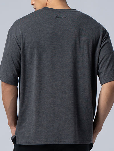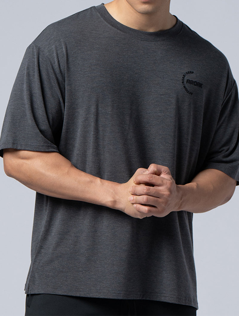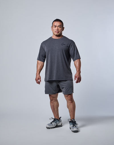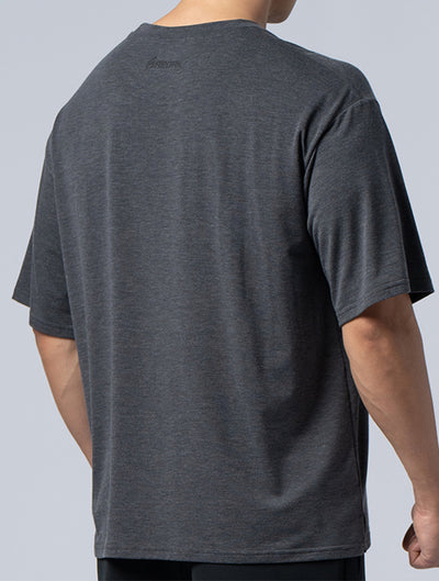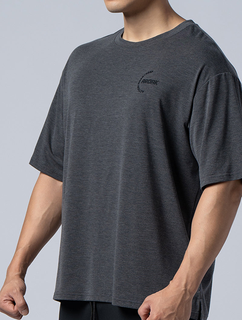 オフショルダーでゆったりとしたフィット感の定番Tシャツは、ワークアウトのどの場面でも快適な動きをサポート。