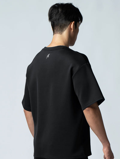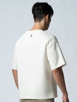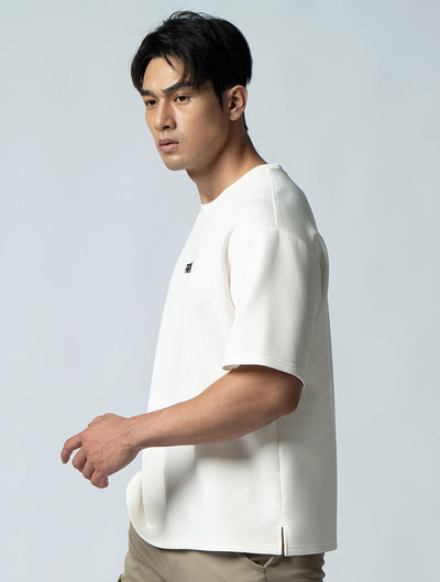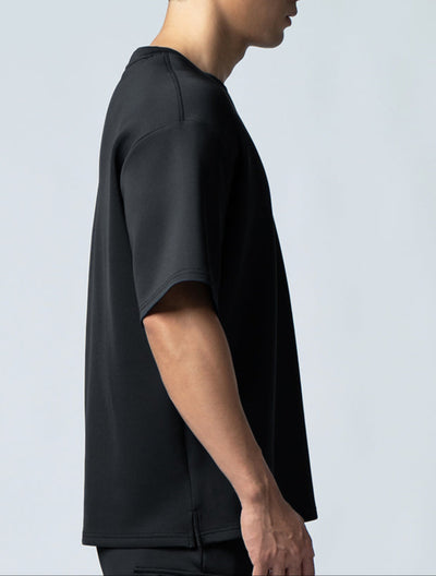 ゆったりとしたフィット感が体型を整え、肩や胸のラインを際立たせます。オーバーサイズの身幅により快適な着心地とリラックス感を実現。ややドロップショルダーのカッティングと相まって、肩まわりを自然に強調し、全体のシルエットバランスを美しく見せます。