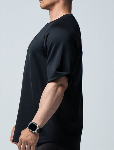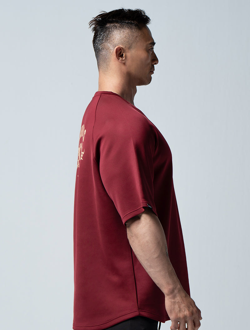 オーバーサイズの身幅はゆったりと快適な着心地を実現し、わずかに落ちたショルダーラインのデザインが肩まわりを強調。肩幅を広く見せ、よりたくましい印象とスタイルアップ効果を演出します。